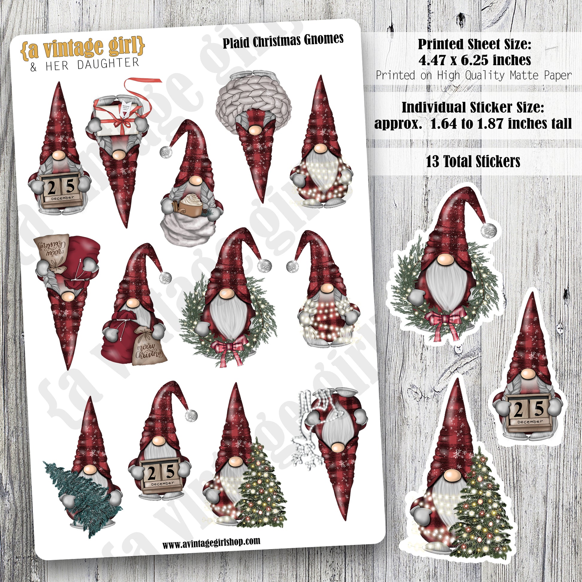 GNOMES | Plaid Christmas Gnomes | Deco Sticker Sheet